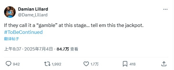 他还更新推特写道:“如果他们管这叫‘赌博’,那就告诉他们,这就是头等奖!”